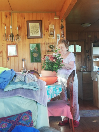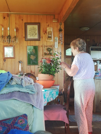 Fig. 4 My grandmother taking care of her red chrysanthemums.
