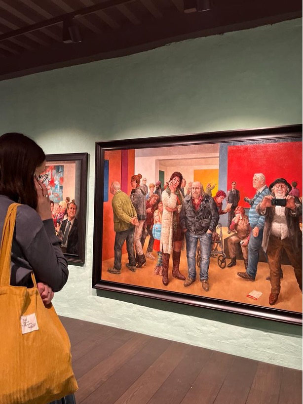 Voor elk persoon op het doek kan ik wel iemand in mijn eigen omgeving bedenken die er ook zo bij zou lopen op een tentoonstelling als de figuren van Van Dokkum. En dat, merk ik al snel, is de kracht van deze kunstenaar: we herkennen ons allemaal in zijn plaatjes. Al konden mijn vriendin en ik het natuurlijk niet laten om even een opmerking te maken over zijn witte en heteronormatieve scènes.
