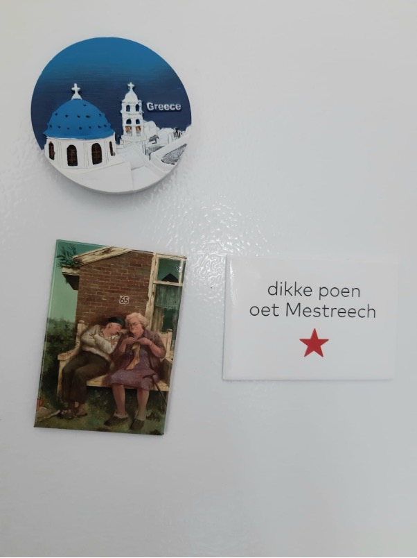 Het schilderij Liefde vergaat niet van Marius van Dokkum als magneet op onze koelkast.