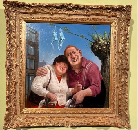 Ook blijkt het ontzettend verfrissend te zijn om de tijd waarin we momenteel leven, weerspiegeld te zien in kunst. Zo zijn er nu al werken te zien waarop mondkapjes worden afgezet voor een kerstknuffel en ouderen op elektrische fiets op fascinerende snelheid voorbij komen crossen. Het is weer eens wat anders dan een adellijk gezelschap of Bijbelse vertoning.