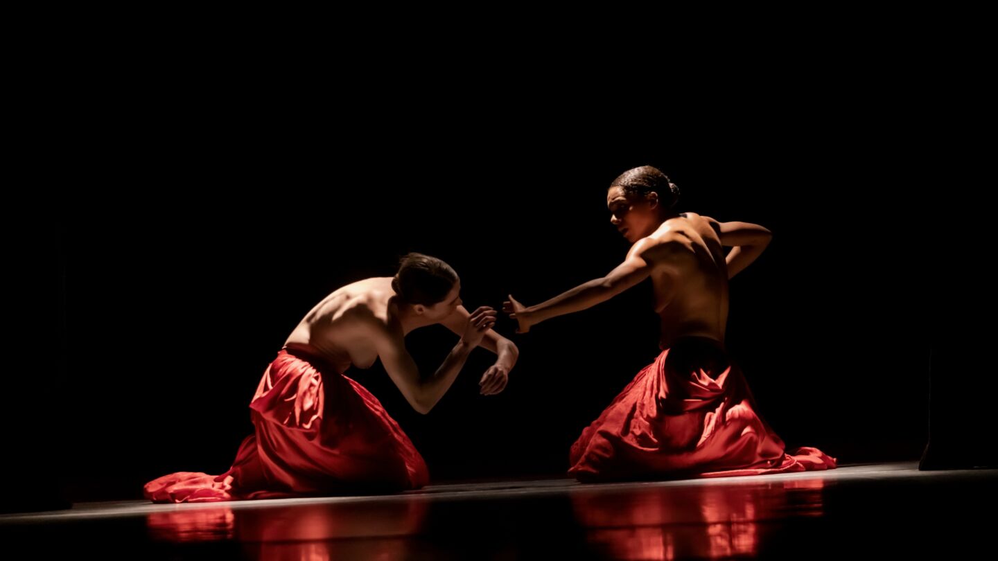 Ik moet eerlijk toegeven dat het in het begin wat afleidend was, maar het wende snel en uiteindelijk zag je de intimiteit en kwetsbaarheid van deze dans; het had iets puurs dat me wist te raken in mijn diepste wezen. Kylián durft zich kwetsbaar op te stellen en dat komt aan bij de kijker. Deze puurheid contrasteert Kylián met chique horror en grote gebaren: koninklijke rode rokken en korsetten, enorme zwarte doeken, vúúr (ik was lichtelijk gestresst dat de schouwburg zou afbranden). Kylián is zeker niet bang om een statement te maken en toont ook hier bravoure.