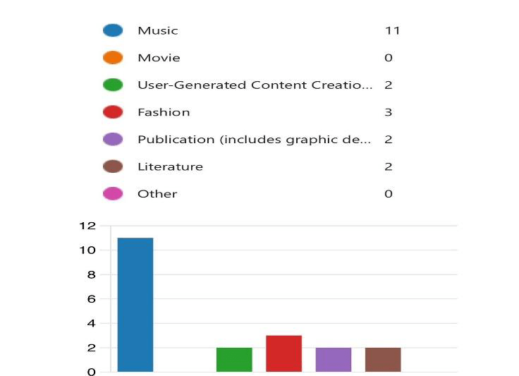 When asked about the discipline in the creative industries they are likely to succeed, eleven participants, representing a majority (55%) chose music, this was followed by the fashion industry, preferred by three participants (15%), while User-Generated Content Creation (UGC), literature and publication had each 10% each. Surprisingly, none of the participants expressed optimism about the likelihood to succeed in the movie industry in Ghana. Music appears to be very popular among the participants and an inspirational field for most young creatives. This reflects the pool of talents, the market demand, and perceived opportunities in the music industry in Ghana.