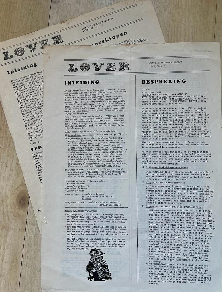 Tijdschrift LOVER ontstond in 1974, in de hoogtijdagen van de tweede feministische golf. Waar de eerste golf zich eind negentiende en begin twintigste eeuw vooral richtte op scholing, arbeid en politieke rechten voor vrouwen, stonden in de tweede golf zaken als legale abortus, recht op kinderopvang en een afschaffing van de wettelijke discriminatie van vrouwen centraal. In Nederland waren er verschillende groepen die zich hard maakten voor deze zaken, zoals de actiegroep Dolle Mina. LOVER was verbonden aan een andere groep: de Man-Vrouw-Maatschappij. In 1974 werd LOVER voor het eerst uitgebracht, toen als bijlage van de MVM-nieuwsbrief. Er was in die tijd behoefte aan structuur in de grote hoeveelheid feministische geschriften die uitkwamen, dus kwam MVM met een LiteratuurOVERzicht: LOVER was geboren (en spreek je tot op de dag van vandaag dus uit als lóóver).